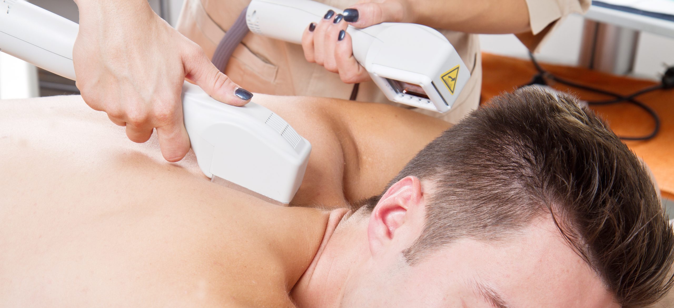young man receiving laser epilation on beauty center